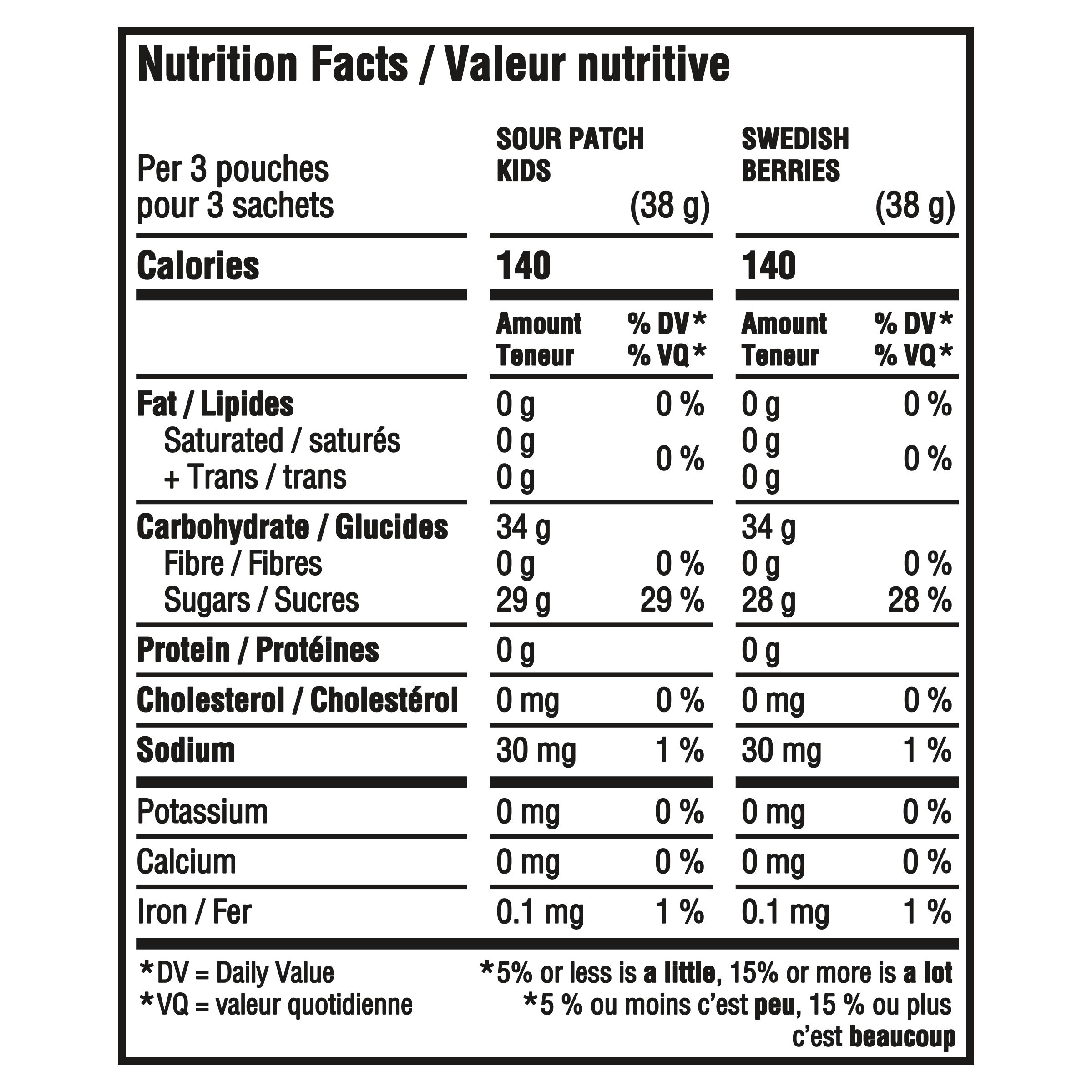 Please your taste buds with Sour Patch Kids soft and chewy candy. Available in a variety of sour, then sweet, flavour combinations for everyday snacks and holiday treats, make it a part of sharing with friends, fun snacks at parties and gatherings, and a fun soft & chewy candy treat. This 225 g pack contains 18 treat-size bags. Prepared in Canada.