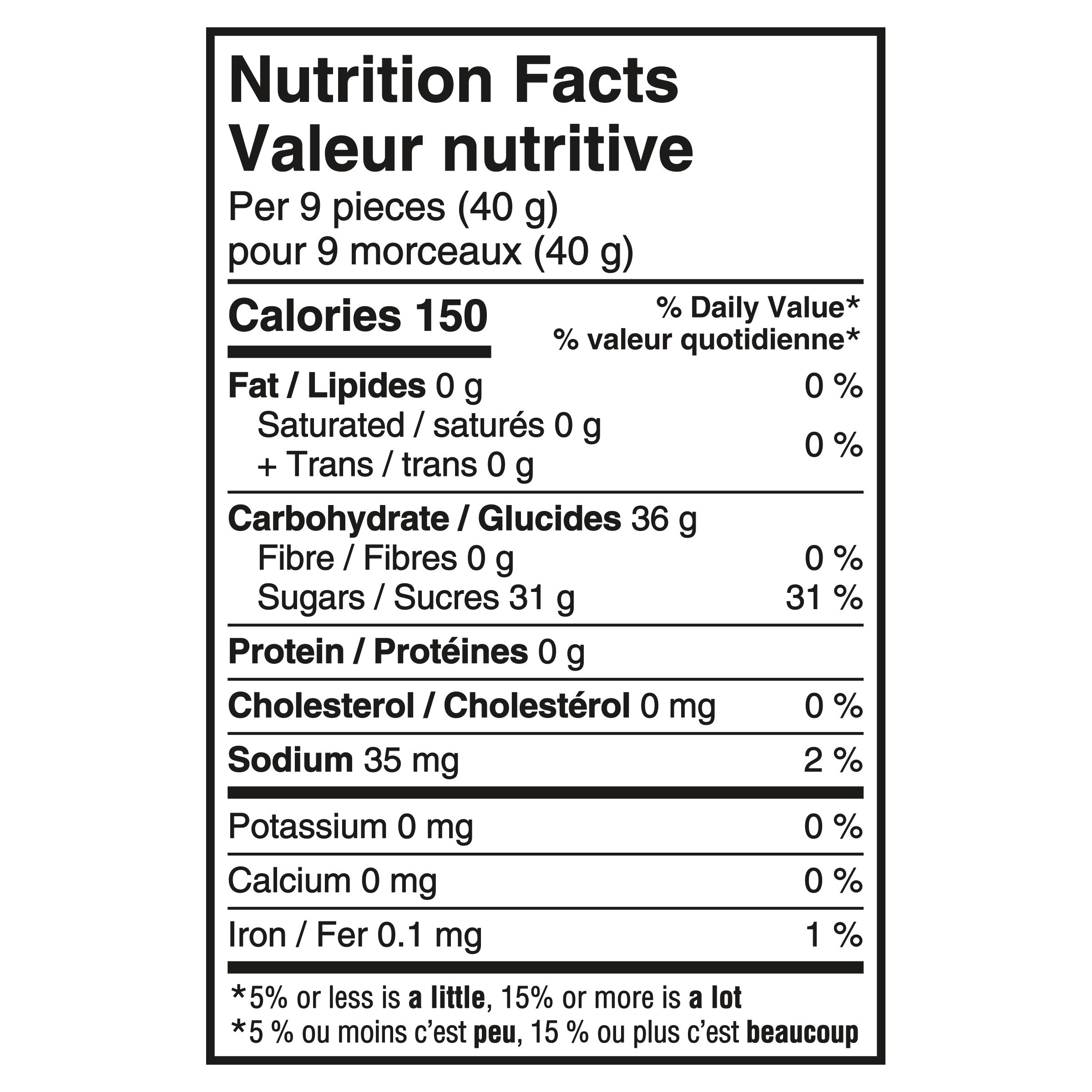 Une confiserie classique que les Canadiens adorent depuis des générations. Des bouchées de bonheur. Des bonbons gélifiés sucrés et moelleux au délicieux goût de pêche. Cet emballage contient 9 sacs individuels de 154 g de friandises MAYNARDS Fuzzy Peach.
