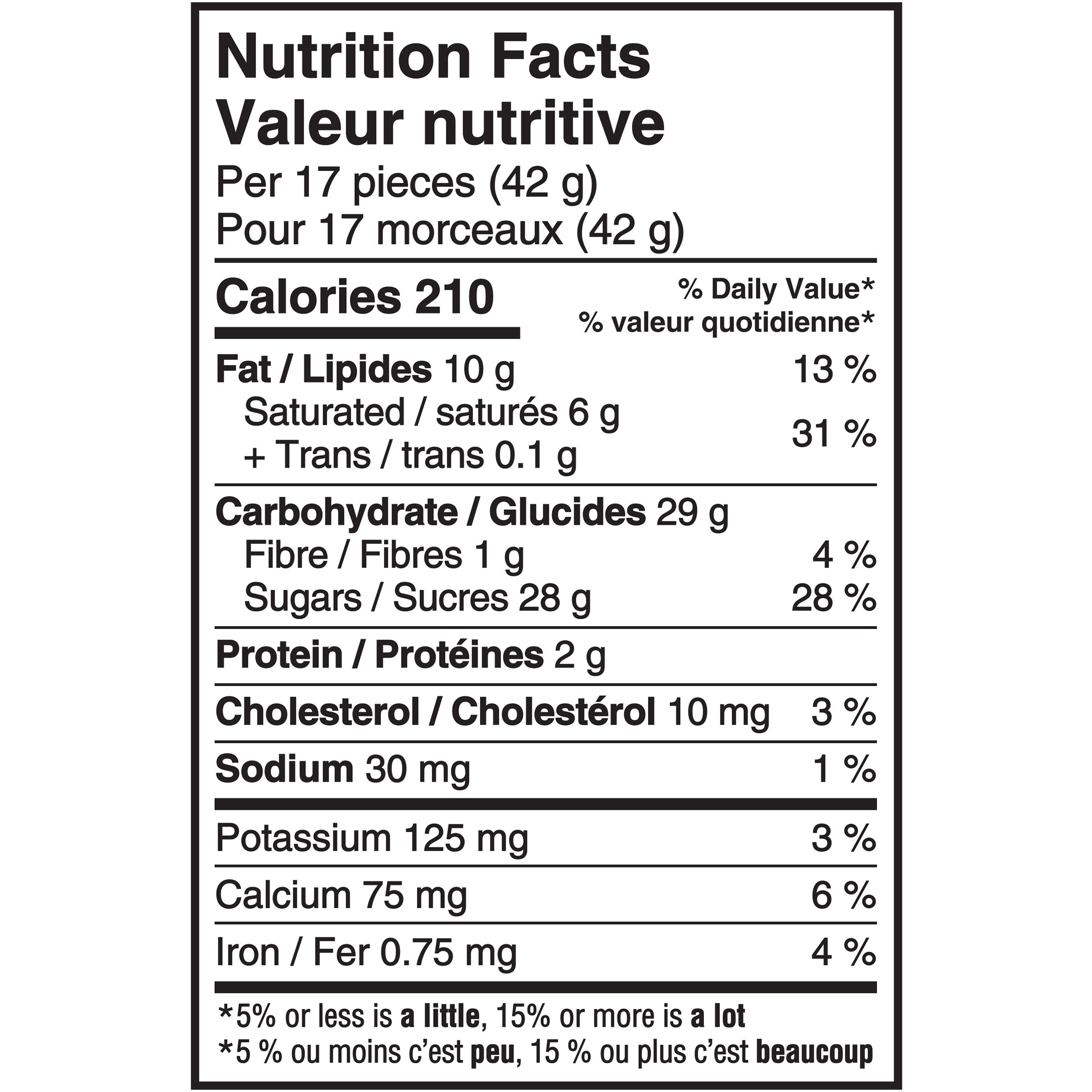 Avec leur coquille croustillante et leur format petites bouchées, les Cadbury Mini Eggs sont parfaits pour partager ou pour déguster soi-même. Remplissez les bols de friandises pour les fêtes, ajoutez-les aux œufs et aux paniers de Pâques, et incorporez-les dans vos desserts préférés comme les biscuits, les brownies, etc. Cadbury est fabriqué de cacao de sources durables à 100 %. Programme d'approvisionnement durable du cacao, Cocoa Life favorise des pratiques agricoles responsables, aide à combattre la déforestation, et contribue à prêter main-forte aux communautés cultivatrices de cacao. Cet emballage contient un sac de Cadbury Mini Eggs de 400 g.