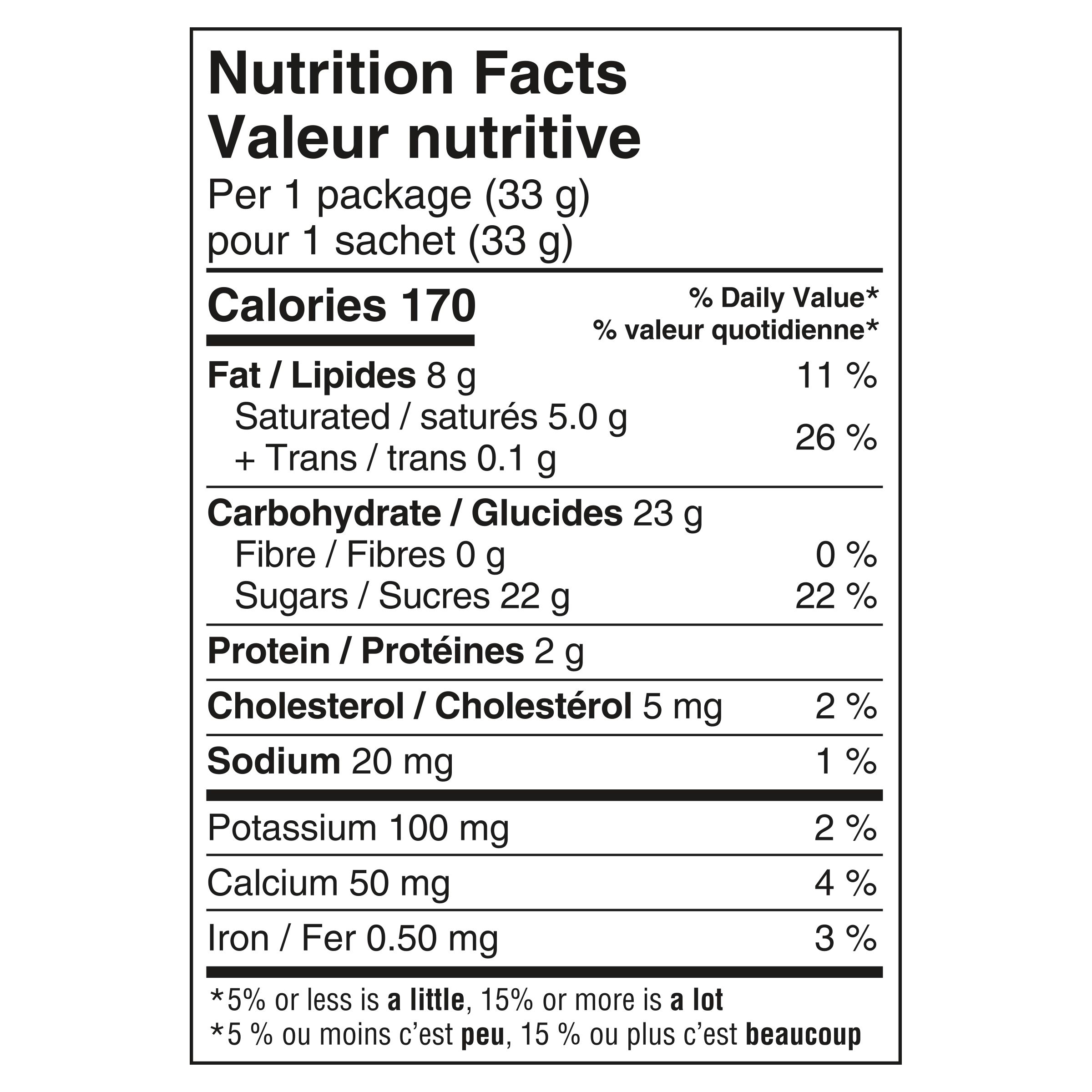 : Sucre, Substances laitières, Huiles de palme et végétale modifiées, Chocolat non sucré, Beurre de cacao, Lécithine de soja, Gomme arabique, Arômes naturels et artificiels, Dioxyde de titane, Tartrazine, Bleu brillant FCF, Rouge allura. Contient : Lait, Soja. Peut contenir : Arachides, Amandes, Cajous, Noisettes.