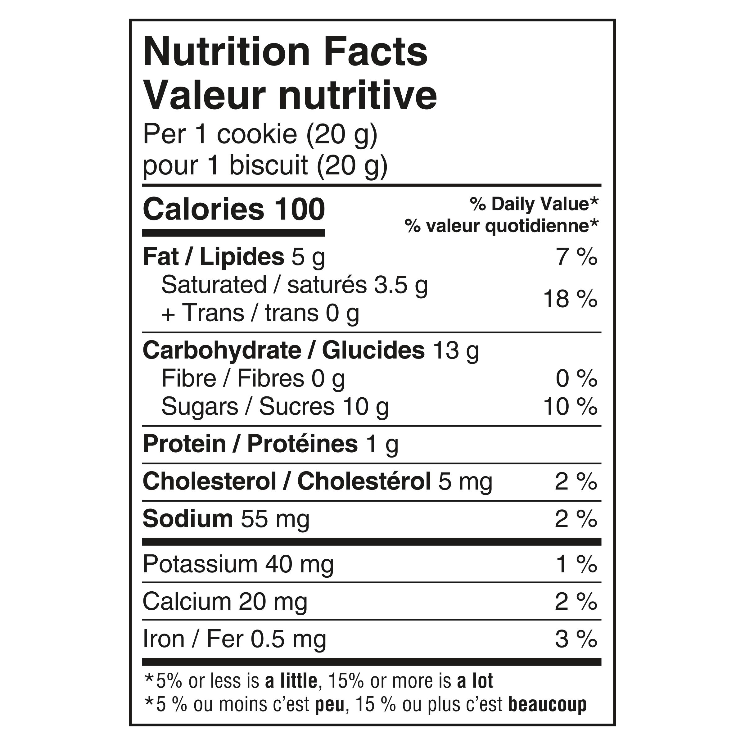 : Sucres (sucre, glucose-fructose), Farine de blé, Huiles de palme et de palmiste, Shortening dhuile de palme modifiée, Substances laitières modifiées, Cacao, Lécithine de soja, Sel, Bicarbonate de sodium, Amidon de maïs, Chocolat non sucré, Arôme artificiel, Dioxyde de titane. Contient : Blé, Lait, Soja.