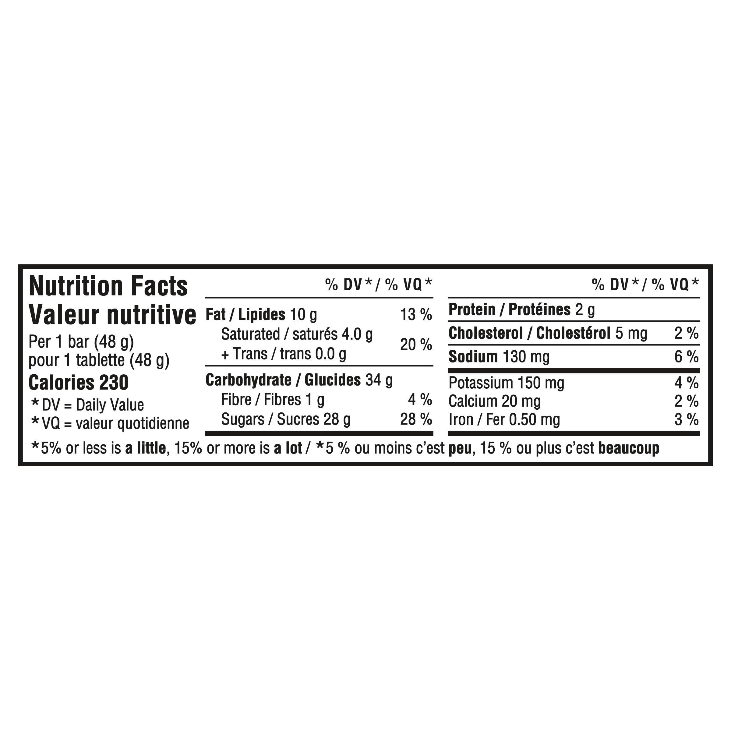 Sugars (sugar, glucose syrup, blackstrap and fancy molasses), Peanuts, Modified palm oil, Modified milk ingredients, Modified vegetable oil, Cocoa, Unsweetened chocolate, Salt, Wheat flour, Mono- and diglycerides, Soy lecithin, Natural flavour. Contains: Milk, Peanut, Wheat, Soy. May contain: Tree nuts.