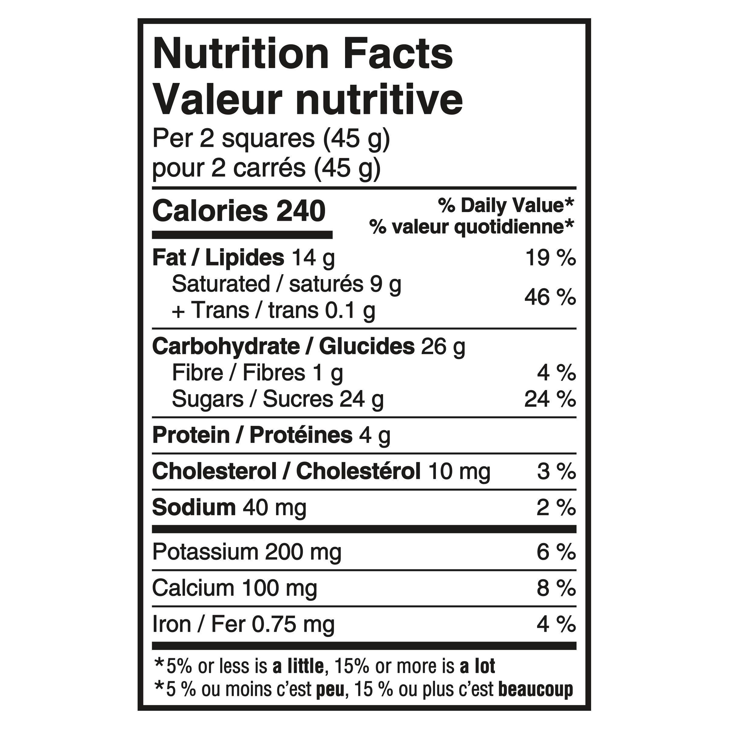 Milk chocolate (milk ingredients, sugar, cocoa butter, unsweetened chocolate, soy lecithin, artificial flavour). Contains: Milk, Soy. May contain: Peanut, Tree nuts.