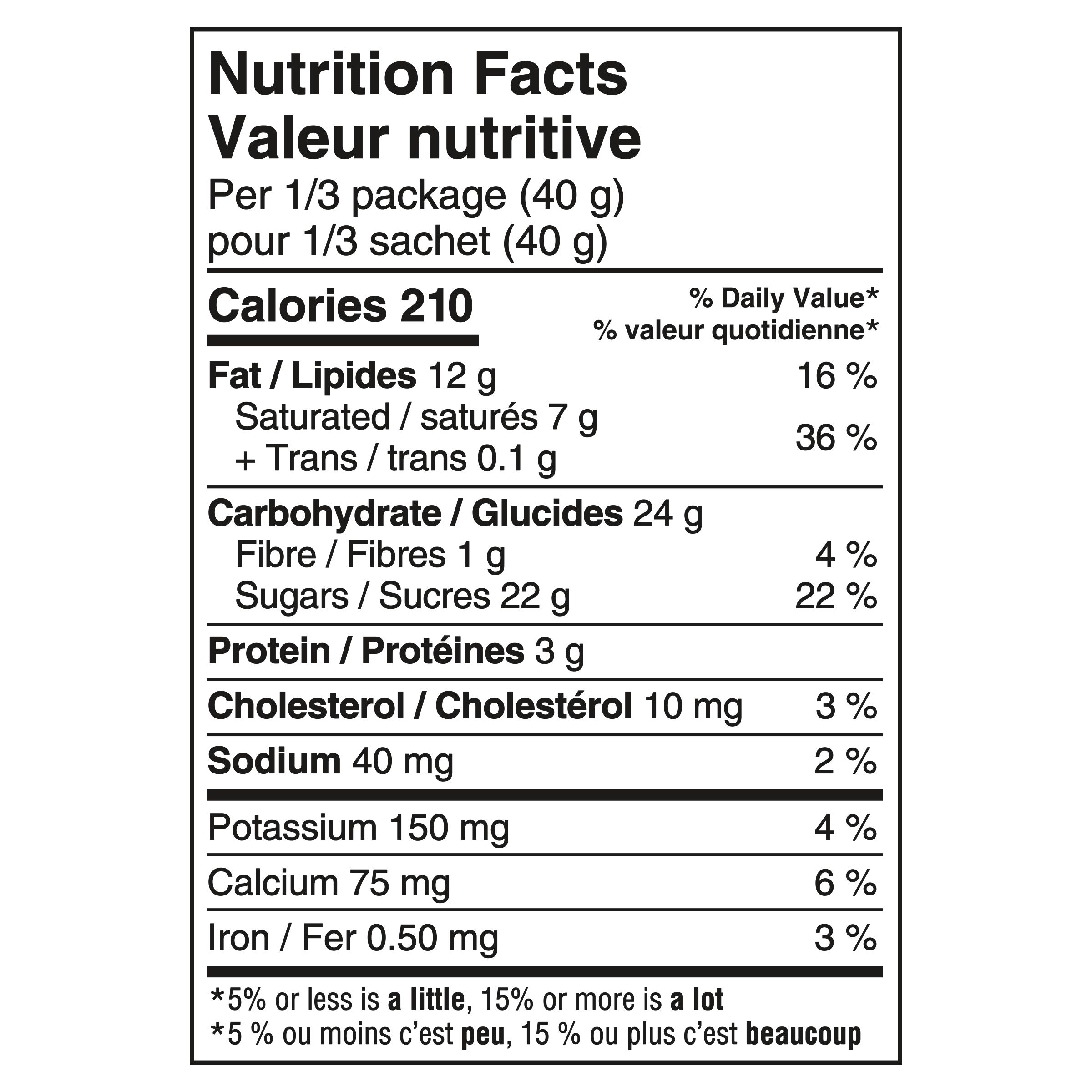Modified milk ingredients, Sugars (golden sugar, glucose syrup [corn and/or wheat]), Unsweetened chocolate, Cocoa butter, Modified palm oil, Palm oil, Modified vegetable oil, Salt, Ammonium phosphatides, Sodium carbonate, Artificial flavour. Contains: Milk, Wheat. May contain: Tree nuts.
