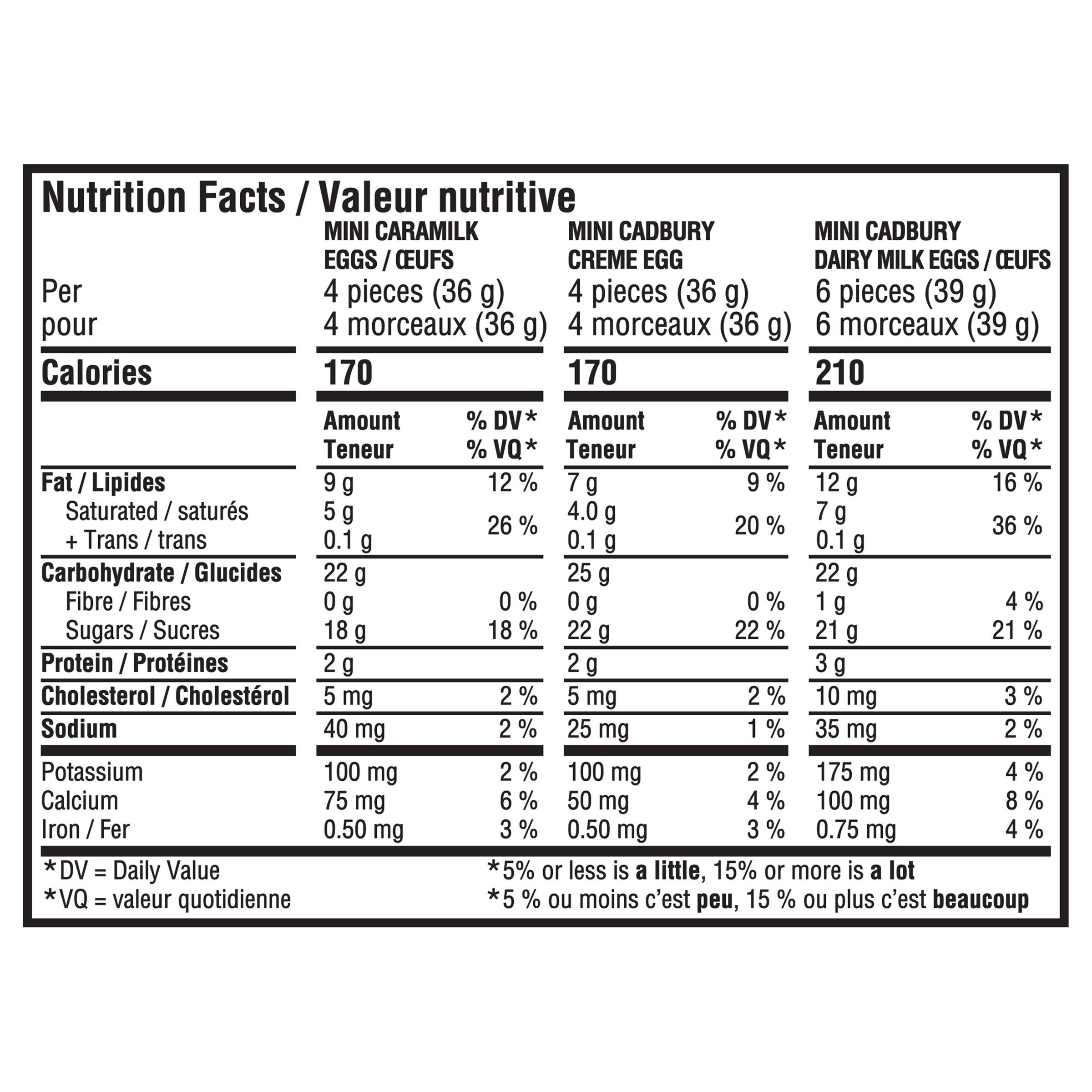 A delicious treat whether you're sharing or treating yourself, enjoy Cadbury Mini Eggs' crispy candy shell in bite-sized pieces. Fill candy bowls for parties, add to Easter eggs and baskets, and incorporate them into your favourite baked treats like cookies, brownies, and more. Cadbury is 100% sustainably sourced cocoa. Cocoa Life is our sustainable cocoa sourcing program that does good by encouraging responsible farming, and by helping fight deforestation and support cocoa farming communities. This pack includes one 154 g bag of Cadbury Chocolate Eggs.