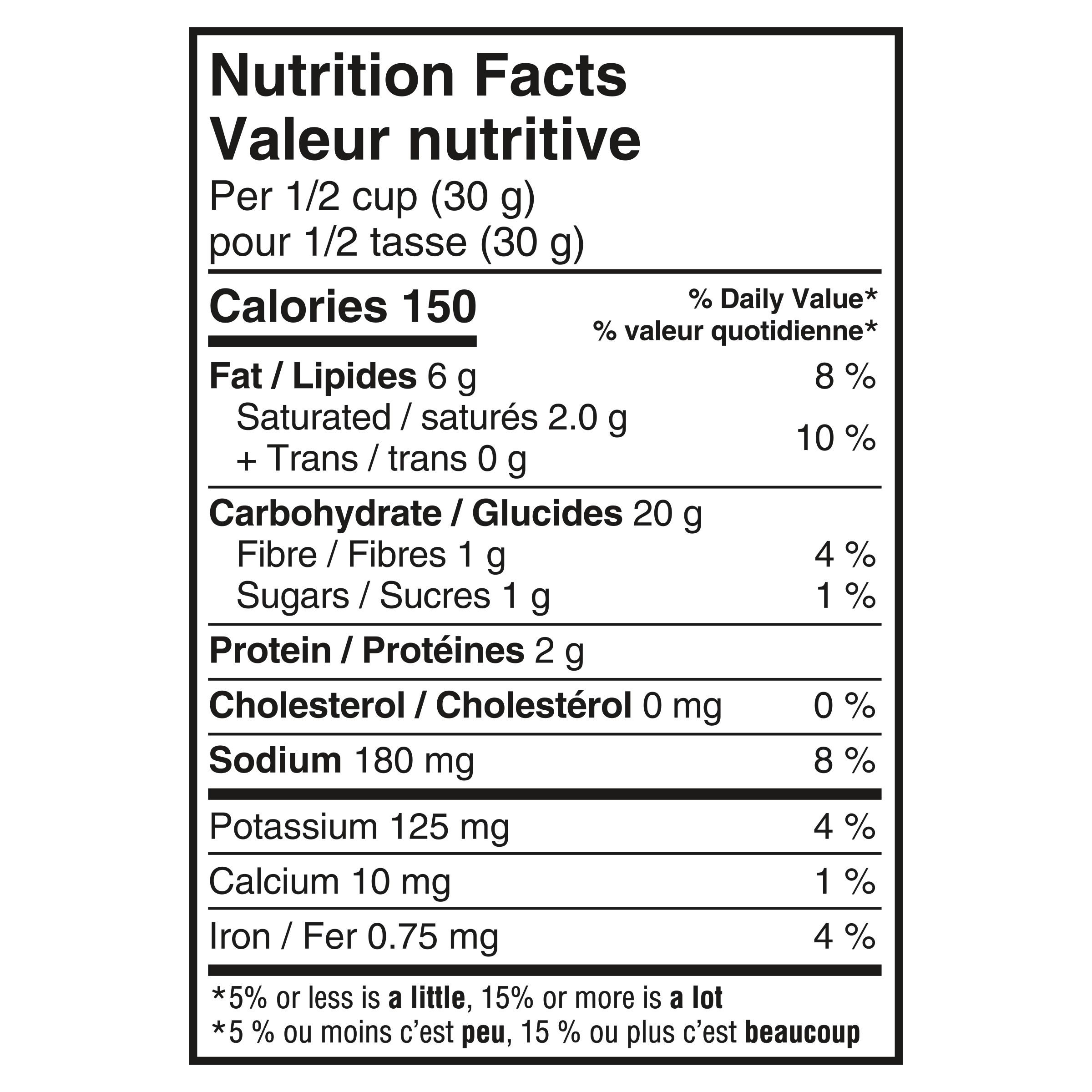 Wheat flour, Potato flour (potatoes, mono- and diglycerides, citric acid), Shortening (vegetable oil, modified palm oil), Modified corn starch and/or Corn starch, Seasoning (sugar, salt, sodium diacetate, dried glucose syrup, corn starch, torula yeast, autolyzed yeast extract, spices, sodium acetate, onion powder, monosodium glutamate, garlic powder, natural flavour, paprika, citric acid), Sugars (glucose-fructose, sugar), Modified potato starch and/or Potato starch, Wheat bran, Monosodium glutamate, Malted barley flour, Soy lecithin, Baking soda, Salt, Sulfites, Annatto extract, Caramel colour. Contains: Wheat, Sulfites, Barley, Soy.
