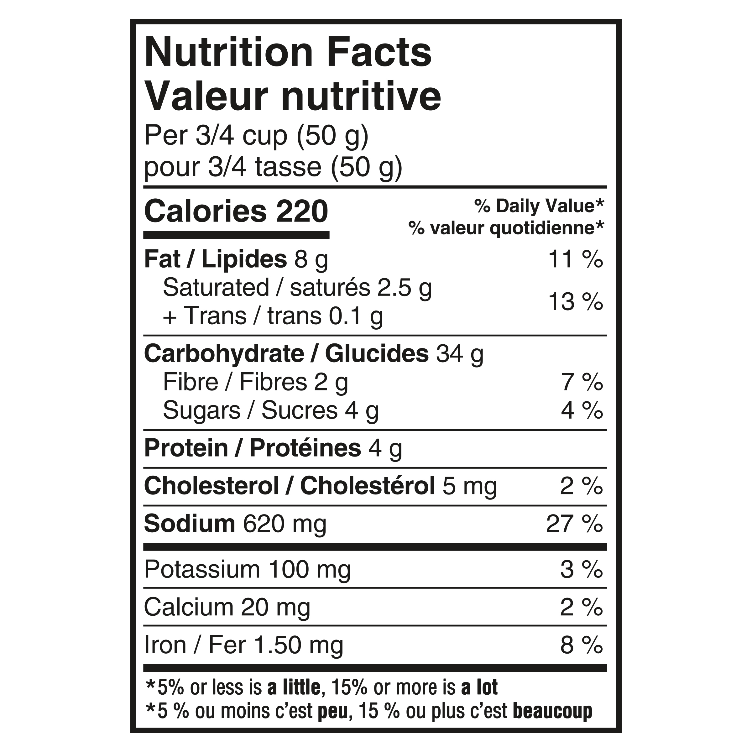 Wheat flour, Whole grain wheat, Shortening (vegetable oil, modified palm oil), Corn flour, Sugars (sugar, dextrose, glucose syrup, barley malt extract), Salt, Oat flour, Cheddar cheese powder (milk), Autolyzed yeast extract, Vegetable oil, Baking soda, Yeast, Hydrolyzed wheat protein, Ammonium bicarbonate, Onion powder, Monosodium glutamate, Modified milk ingredients, Paprika, Monocalcium phosphate, Vinegar, Diammonium phosphate, Sodium hydroxide, Amylase, Protease, Natural flavour, Sunset yellow FCF, Annatto extract. Contains: Wheat, Barley, Oats, Milk.