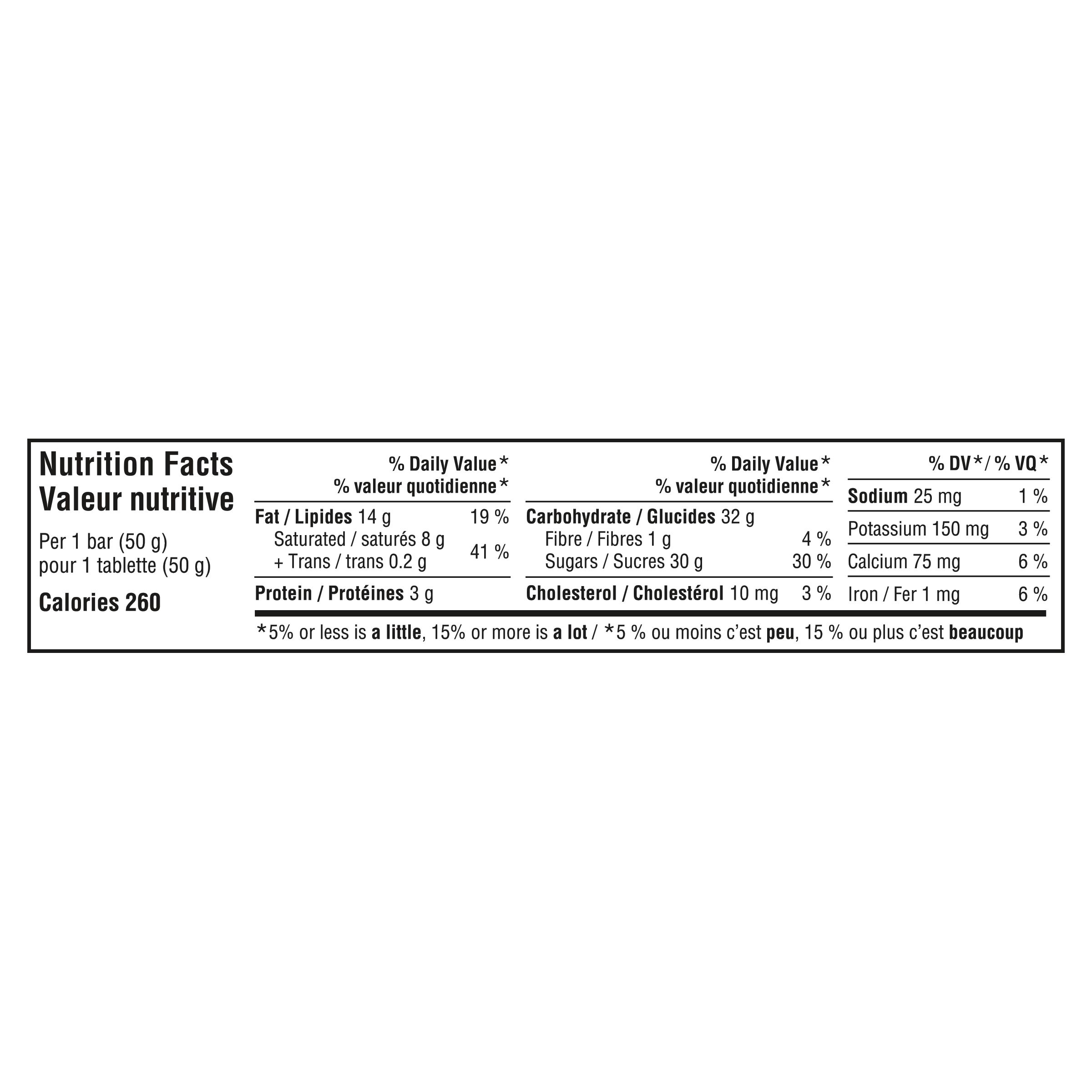 Milk chocolate (sugar, milk ingredients, cocoa butter, unsweetened chocolate, soy lecithin, artificial flavour), Nougat (sugar, honey, almonds, dried egg-white). Contains: Milk, Soy, Almond, Egg.