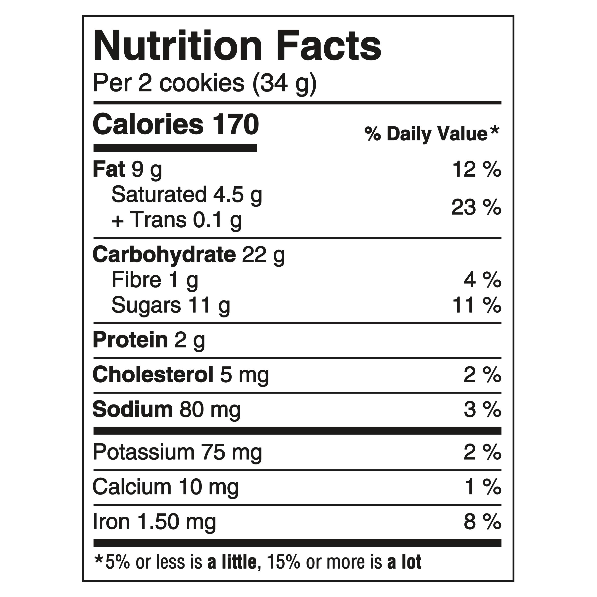 : Morceaux de chocolat (sucre, chocolat non sucré, beurre de cacao, dextrose, substances laitières, lécithine de soja), Farine de blé, Shortening (huile végétale, huile de palme modifiée), Sucres (sucre et/ou sucre doré, mélasse qualité fantaisie, glucose-fructose), Farine de blé entier, Noix de coco (avec sulfites), Bicarbonate de sodium, Substances laitières modifiées, Sel, Hydrogénocarbonate dammonium, Phosphate dammonium, Lécithine de soja, Arôme artificiel, Colorant caramel. Contient : Lait, Soja, Blé, Sulfites.
