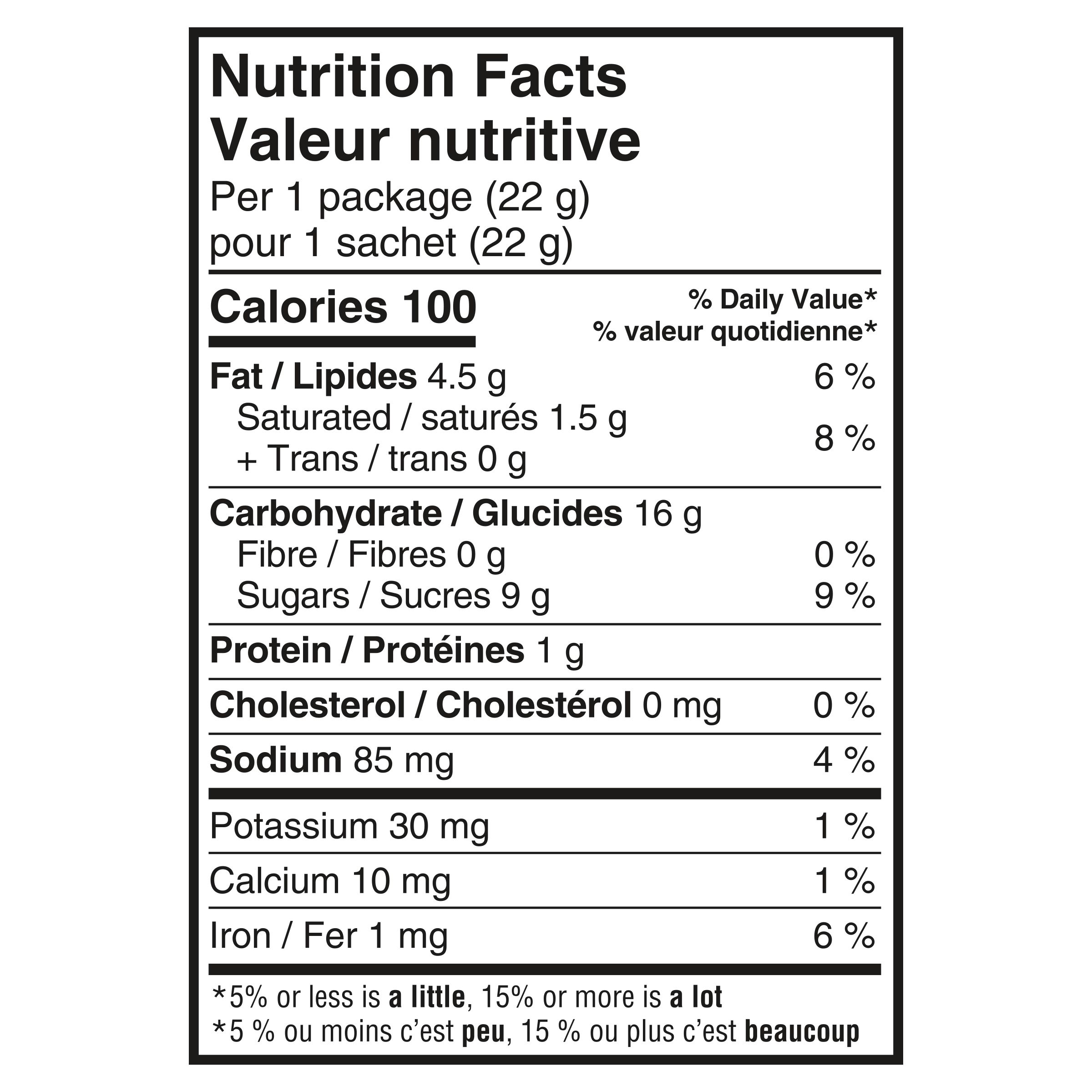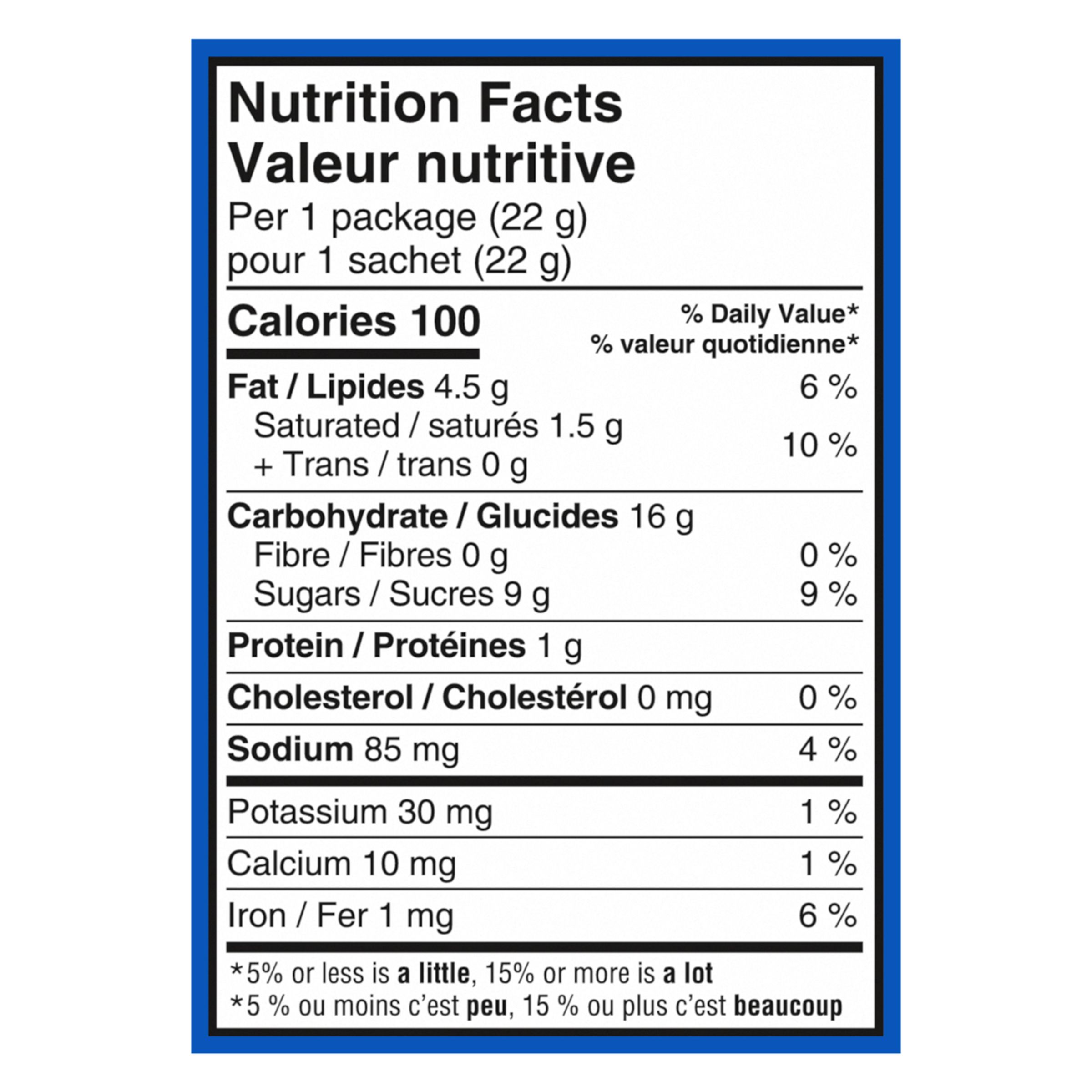 Prenez une délicieuse pause avec les biscuits-sandwiches au chocolat OREO, les biscuits-sandwiches préférés des Canadiens depuis plus de 100 ans. Extrêmement faciles à tremper, les biscuits-sandwiches au chocolat OREO constituent en une garniture onctueuse à la crème entre deux gaufrettes au chocolat au goût riche, ce qui en fait le biscuit préféré du lait. Ces collations au chocolat OREO original sont parfaites pour emporter avec le dîner à l'école ou au travail, ou bien pour être mélangées à votre recette de dessert préférée. Chaque sachet s'emporte facilement; parfait pour de délicieuses collations sur le pouce. Ces sachets pratiques de biscuits OREO contiennent deux biscuits chacun, ce qui en fait une portion idéale pour grignoter, partager ou voyager. Avec 20 sachets de biscuits dans la boîte, vous serez toujours prêt à grignoter en sortant de la maison.
